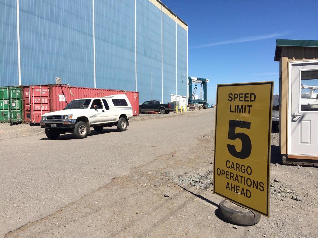 After Linnabary’s work-session appearance two weeks ago, the port planted a portable guard shack on North Cedar just inside the Marine Drive-North Cedar intersection and a companion sign warning “Speed Limit 5 Cargo Operations Ahead.”
