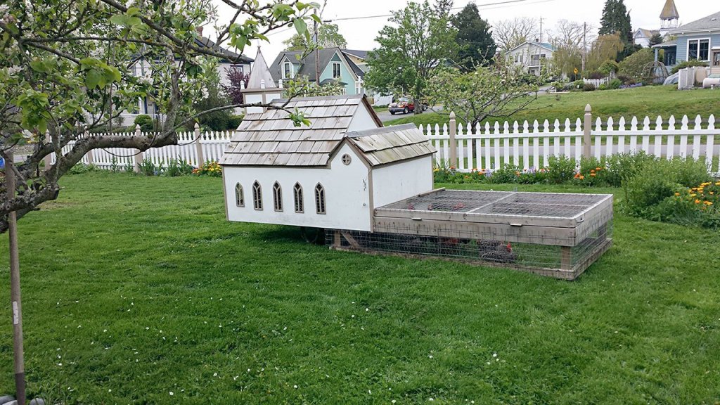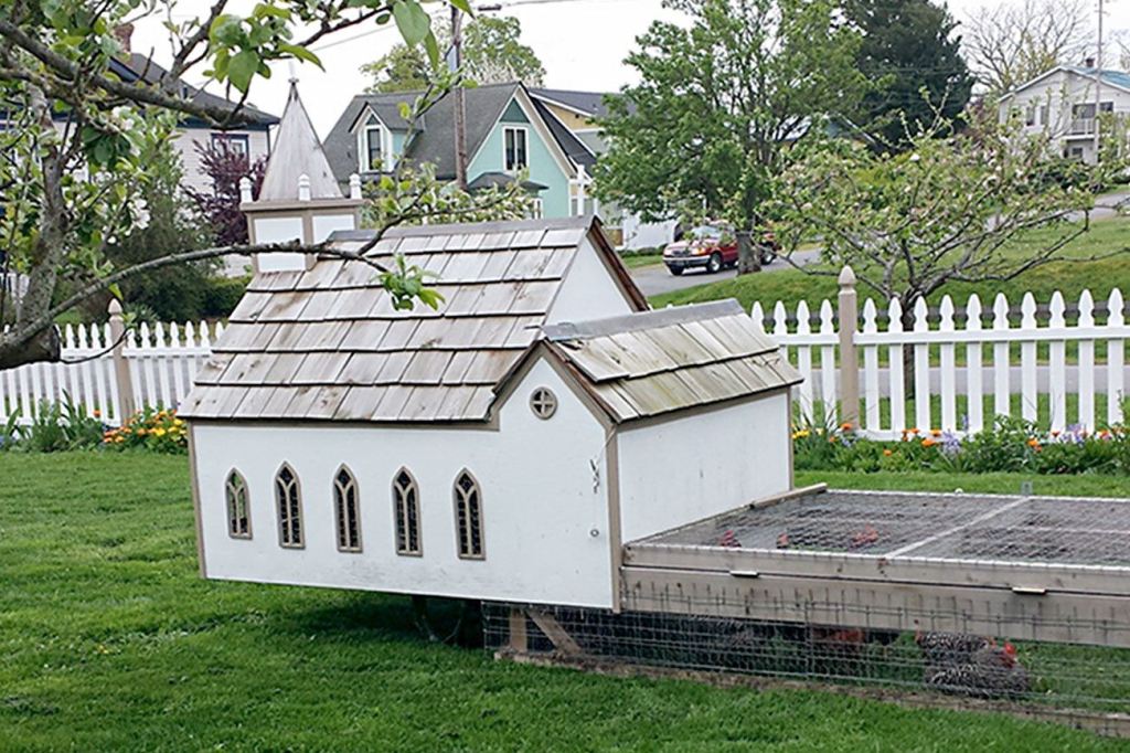 Solar panels have been added discretely, the organization said, pointing out also the replica of the old church in the form of a chicken coop which now graces the side yard.