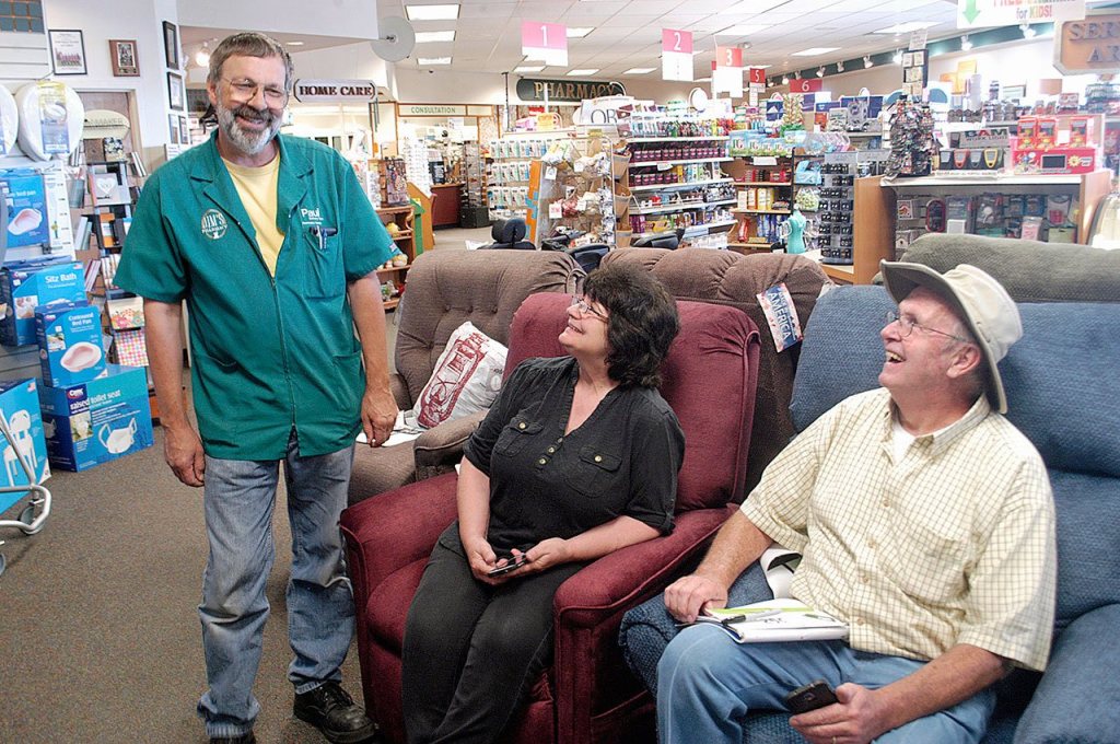 The chair was repaired free of charge — using more than $800 in donated parts — by Paul Gillam, Jim’s Pharmacy service department manager, and then shipped by UPS, also free of charge, to Ohio. It arrived last Wednesday to a much delighted Stebler.