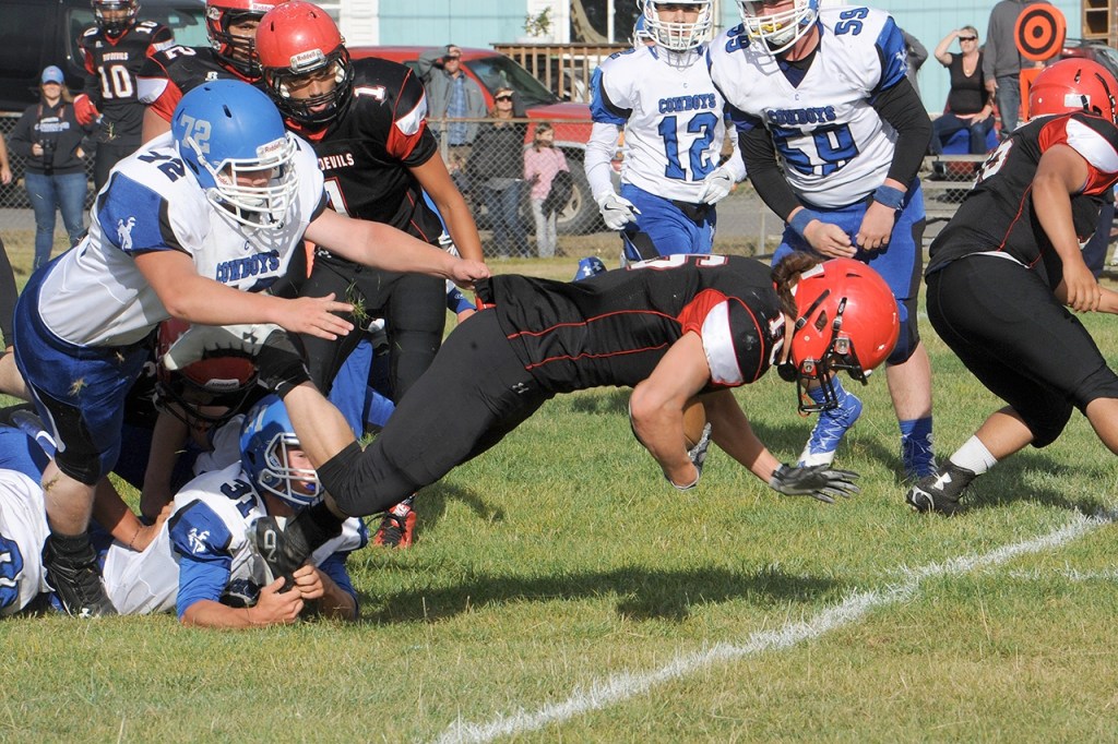 NEAH BAY — Chimacum struck first against Neah Bay, as Domenick Zack returned the opening kickoff 78 yards for a 6-0 Cowboys’ lead.But it was all Neah Bay after that, as the Red Devils rolled up 52 unanswered points in a 52-6 win against Chimacum in an 11-man contest Friday.