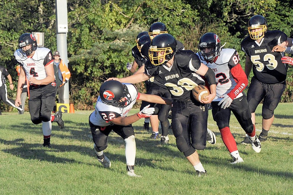 CLALLAM BAY — The Bruins snuffed out a two-point extra-point attempt with no time on the clock to seal a six-man victory against the Hawks.