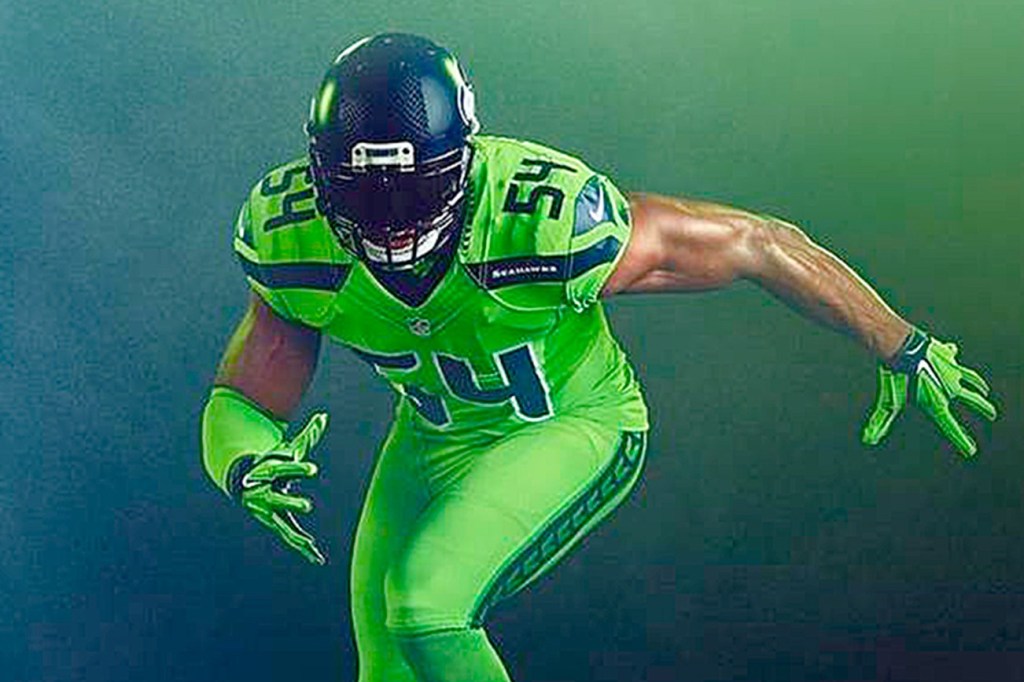 Seattle will be wearing this neon-green ensemble that night on national television. The uniform series will be worn by home teams on its featured, Thursday night games.