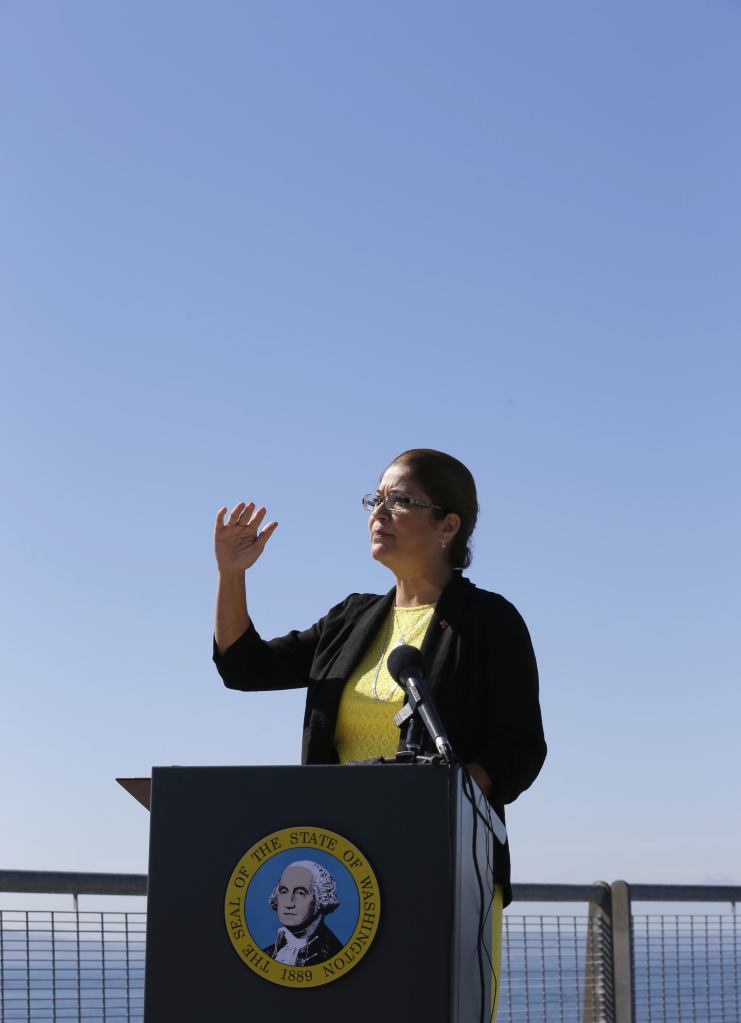“When we consider the challenges our communities face from climate change, we are compelled to act,” state Ecology Director Maia Bellon said at a news conference on Seattle’s waterfront.