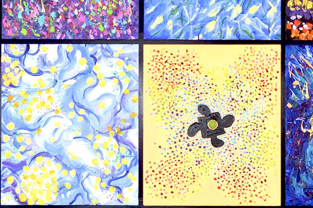 Merging art and science, Lawson said she rendered her concept of brain functions with colorful abstract gestures across nine painted panels — each representing different parts of the brain seen at different levels of magnification.