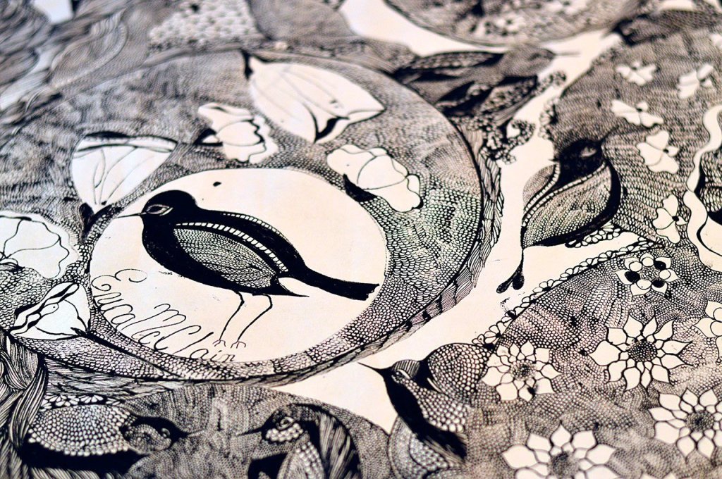 “These huge drawings … immediately spoke to me. Having a fondness for woodcut prints, I loved the high contrast and the incredible textures, particularly those of the natural world,” Mills said.