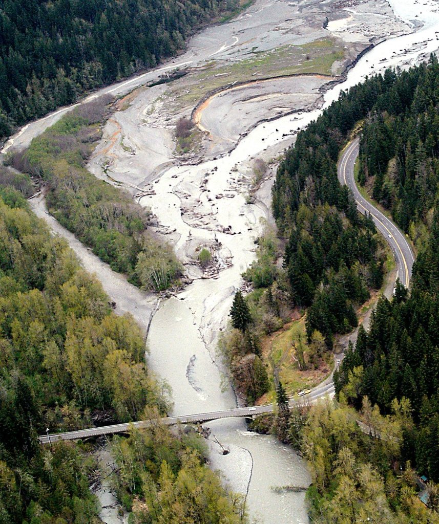The Elwha River has eaten away at the riverbed below the 1926 bridge since the removal of the Elwha and Glines Canyon dams in 2012 and 2014, officials said. High water and sediment from the former reservoirs have scoured the riverbed around the bridge piers.