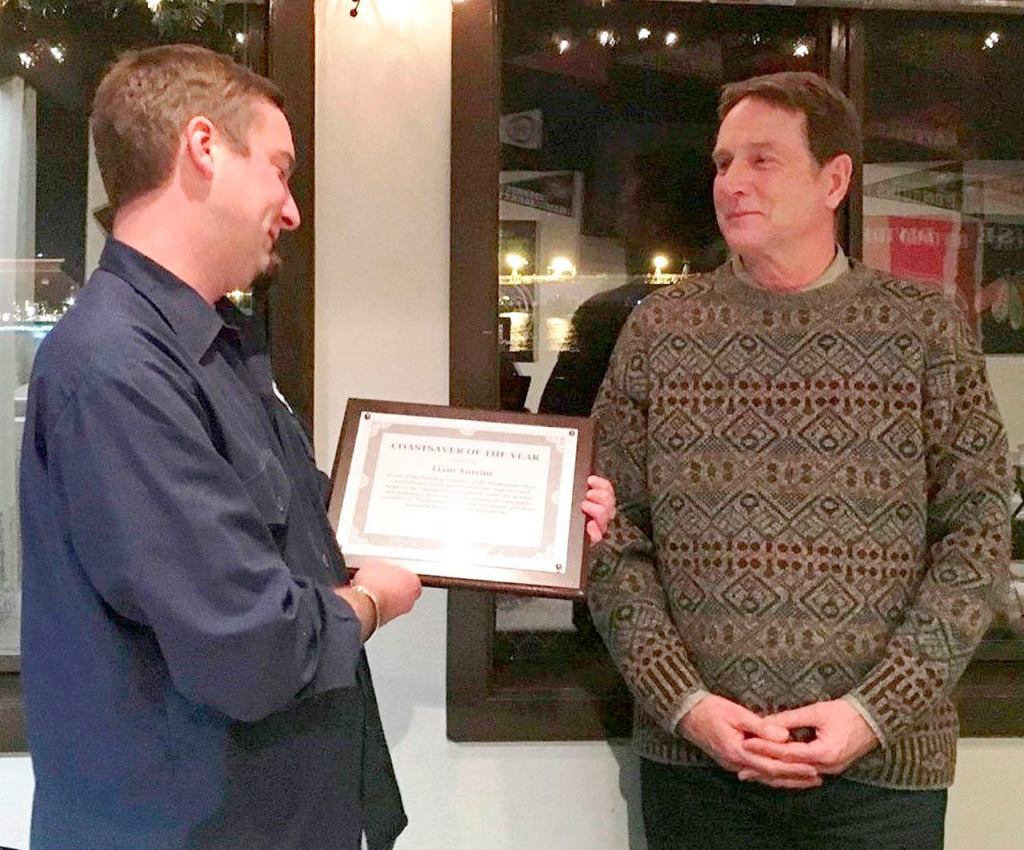 Washington CoastSavers Coordinator Jon Schmidt, left, hands Liam Antrim the 2016 CoastSaver of the Year award recently.