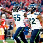 The Associated Press                                Seattle Seahawks defensive end Michael Bennett (72) celebrates and defensive end Frank Clark (55) celebrate during the game against the San Francisco 49ers on Sunday in Santa Clara, Calif.