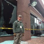 Tape closes off broken windows at businesses in Washington, D.C., after a confrontation with protestors blocks from President Donald Trump’s inauguration. (The Associated Press)