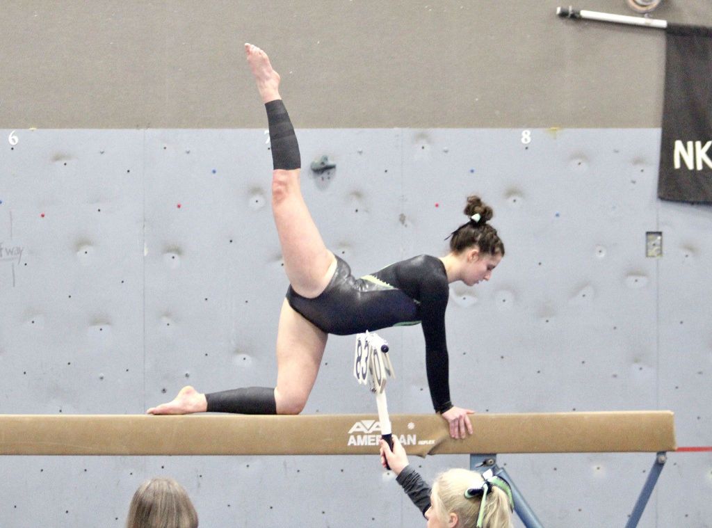 Cassii Middlestead won the beam exercise at Friday’s meet, while Maya Wharton won the floor exercise. Wharton finished second in the all-around, while Middlestead was third. Sequim’s Lesae Pfeffer came in eighth.