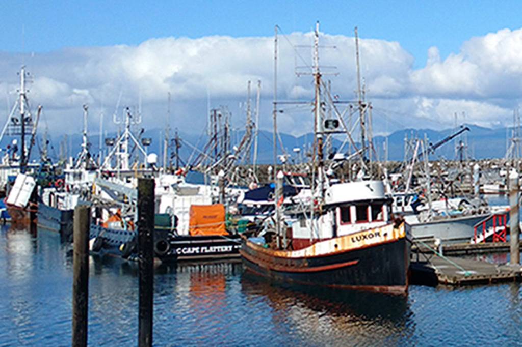The commercial fishing boats seemed to fill all the slips of the marina.