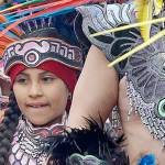 In Shemanski Park in Portland, Ore., hundreds of people, including some families with children, gathered at a May Day rally and watched dancers in bright feathered headdresses perform to the beat of drums.