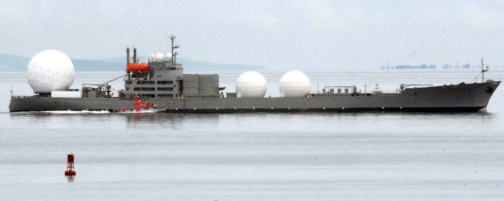 On Friday morning, Tesoro Petroleum in Port Angeles Harbor bunkered Pacific Tracker, an X-Band Transportable Radar Ship that works with the Missile Defense Agency to protect the United States, our deployed armed forces and allies from hostile ballistic missile attack. The white globes on the vessel house the radar systems.