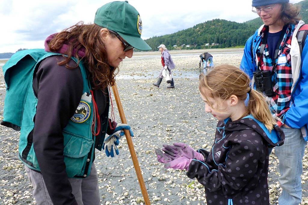Fish and Wildlife shellfish biologists Camille Speck and Doug Rogers, with assistance from Kristina Wilkening, introduced participants to safe and sustainable harvesting practices, said Cheryl Lowe, Jefferson MRC coordinator.