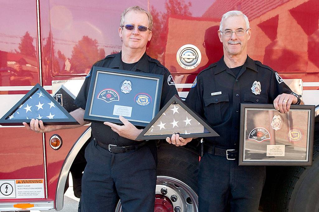 PORT ANGELES — An unprecedented flag ceremony honored two retiring Port Angeles firefighter paramedics.