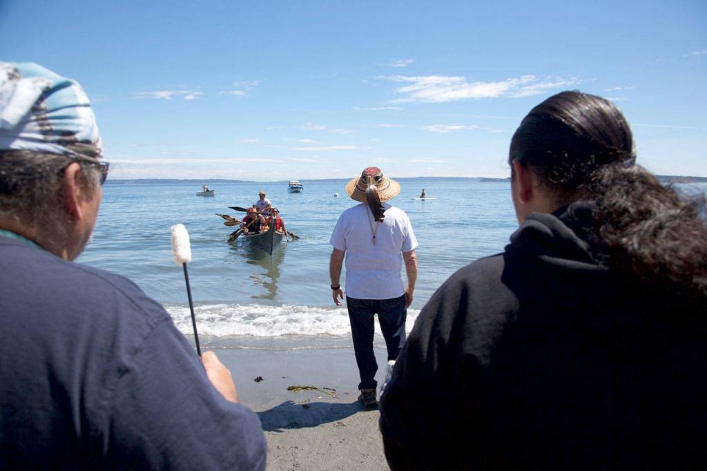 Neighboring tribes welcome canoes ashore at Port Townsend during canoe journeys since it has no tribe in residence.