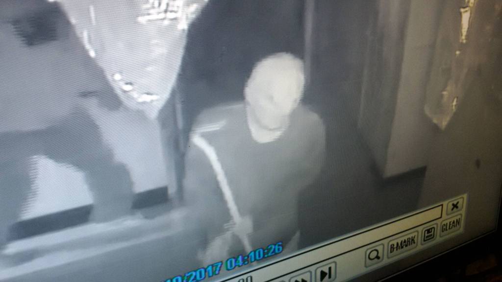 Surveillance photos captured brief glimpses of the burglars at Sunny Farms. They were carrying a sledgehammer, pry bar and a tan backpack.