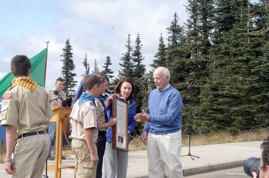 Evans was joined by more than 200 friends, family and former constituents in a park-sponsored ceremony at the Hurricane Ridge Visitor Center.