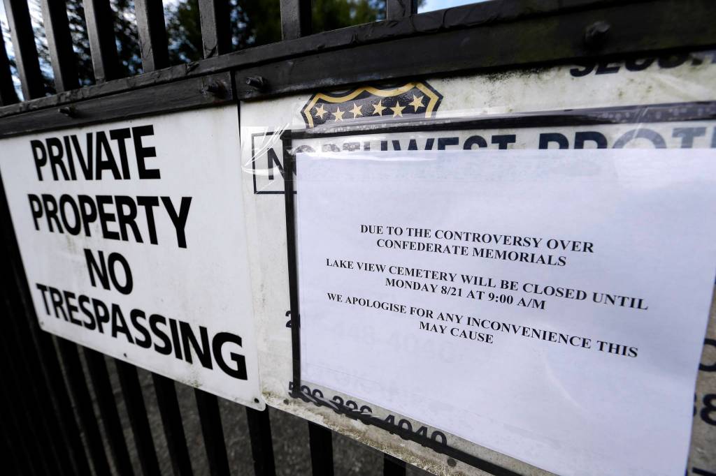 Lake View Cemetery closed Wednesday after receiving threats about the monument and said it would remain closed until Monday due to the controversy.