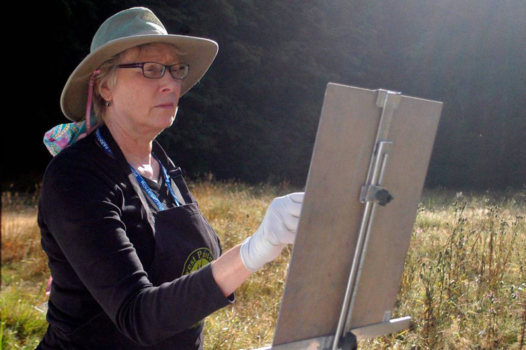 Lindwood’s one of 22 painters in the heat of Paint the Peninsula, the fifth annual weeklong juried plein air competition. She has competed in four of the five annual competitions hosted by the Port Angeles Fine Arts Center.