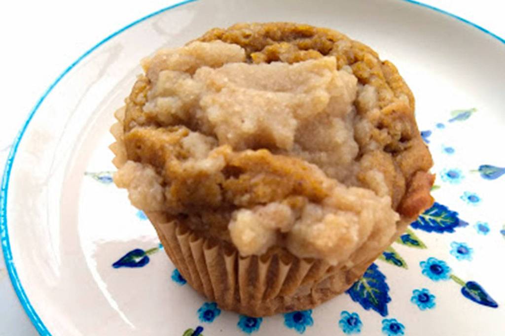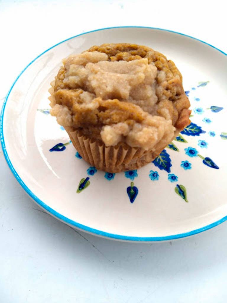 To make the muffins: In a large bowl, whisk the flour, baking soda, cinnamon, pumpkin pie spice and salt together until combined. Set aside.