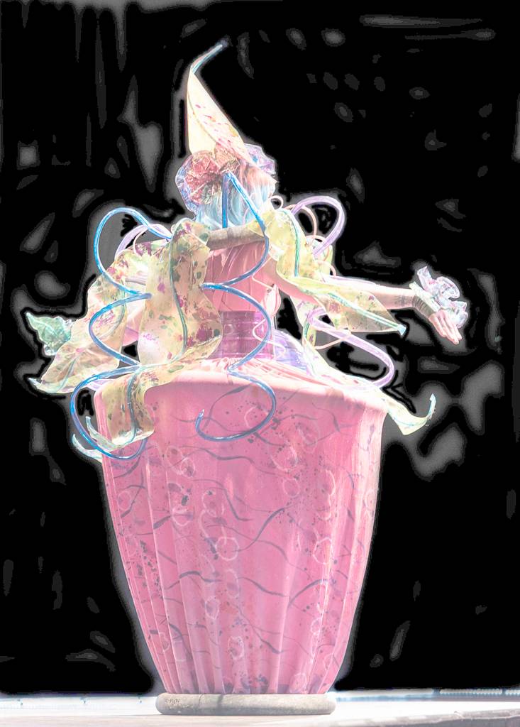 Inspired by Dale Chihuly, Nonie Gaines created “Blown Away” out of ink, dye, paint-embellished PVC tubing, freezer strips, plastic tableware and fabric. (Nonie Gaines)