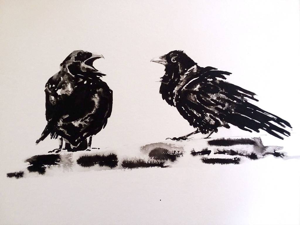 Each raven is created with Indian ink, Rodlend said, with landscapes done in acrylics.