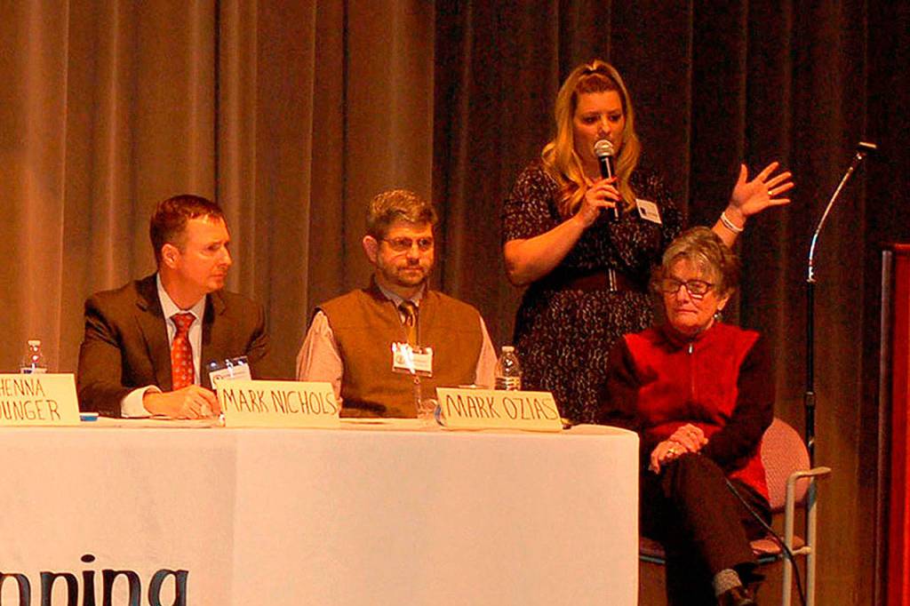 Panelists included Clallam County Commissioner Mark Ozias, Clallam County Prosecuting Attorney Mark Nichols, Healthy Families of Clallam County Executive Director Becca Korby, Sequim Police Department Sgt. Darrell Nelson and Detective Devin McBride, as well as Younger.