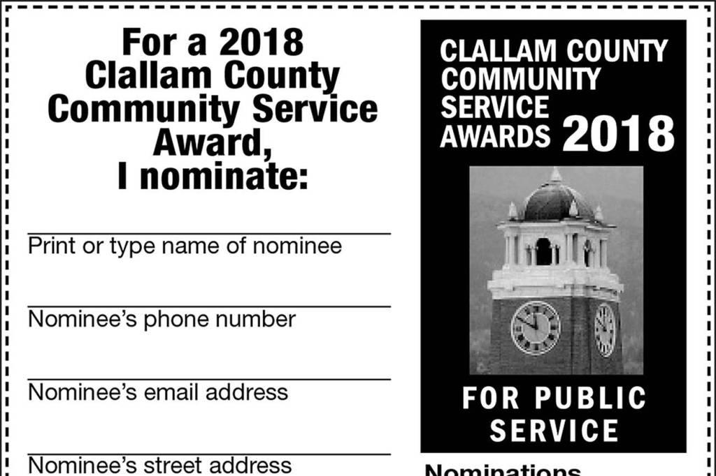 A panel of judges will review the nominations and select one to seven people to receive a Community Service Award at an evening reception in Port Angeles on April 26.