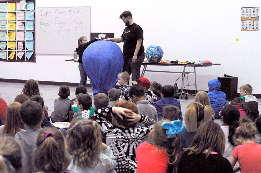 CHIMACUM — When Chimacum Creek Primary School students arrived at school on Friday they found a pop-up purple planetarium in their school’s gym. The 7-meter dome held a scientific surprise inside for the curious kids.