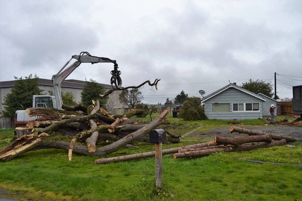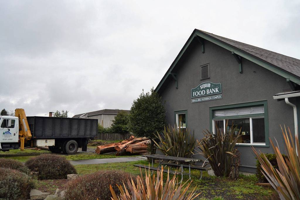 On Friday, crews with Blue Mountain Tree Service Inc. of Sequim removed several large trees to make way for parking at the food bank’s new property at 154 W. Alder St.