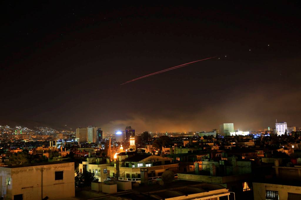 Explosions lit up the skies over Damascus, the Syrian capital, as Trump spoke from the White House.