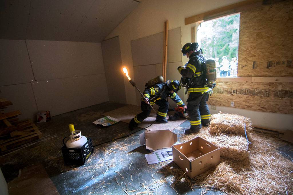 “This gives us the opportunity to see real fire inside a real structure and see how it behaves, and the crews get a good experience pulling attack lines and going in to put out the fire,” said Jake Patterson, deputy chief of operations for Fire District No. 2.