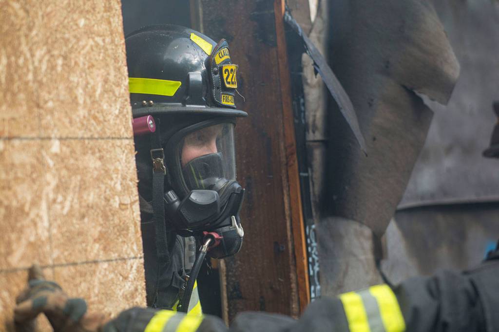 “This gives us the opportunity to see real fire inside a real structure and see how it behaves, and the crews get a good experience pulling attack lines and going in to put out the fire,” said Jake Patterson, deputy chief of operations for Fire District No. 2.