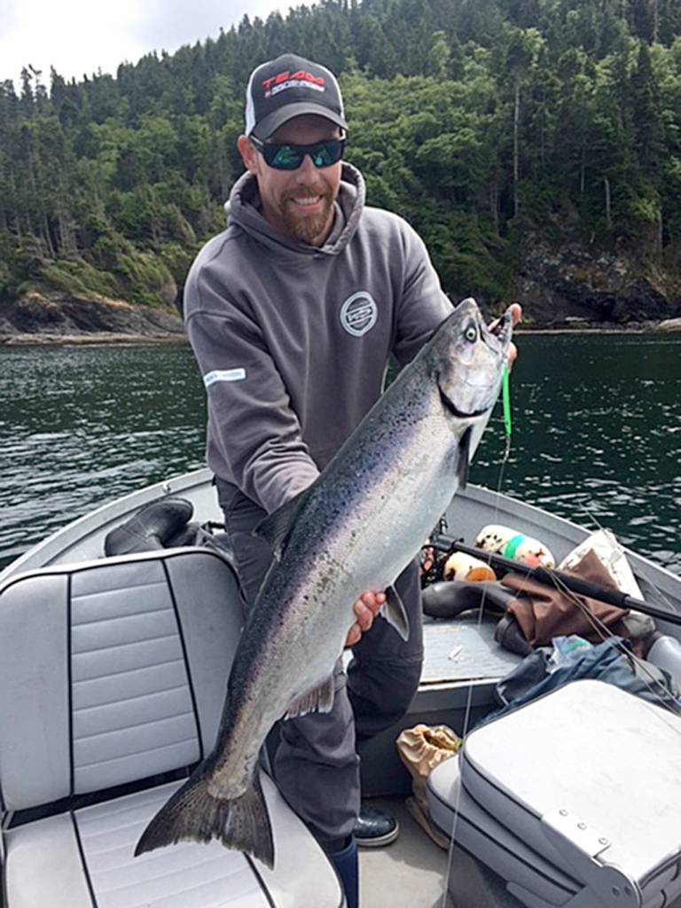“A day later proved even better after Chestnut Cottage owner Tim Ochs joined Eric and Roger. That day, 20 mature chinook were released in addition to numerous blackmouth,” Rosko said. “The highlight of that special day for Roger was a large hatchery chinook that was bent on ramming Eric’s boat. The battle lasted for over a half hour after hooking the beast, with the fish making a torrid run for Vancouver Island then turning back like an erratic torpedo for Eric’s vessel.