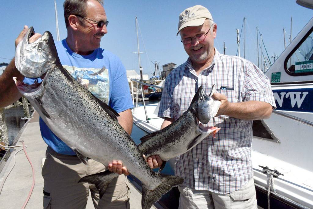 Marine Area 9 opened for hatchery king salmon fishing Monday and angler/brothers Brad, left, and Bruce Monrad of Concrete caught some large fish in Admiralty Inlet.