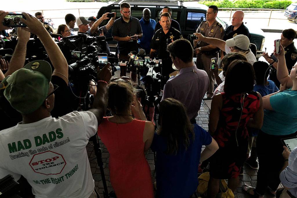 The sheriff’s office used Twitter and Facebook to warn people to stay far away and to ask anyone who was hiding to call 9-1-1.
