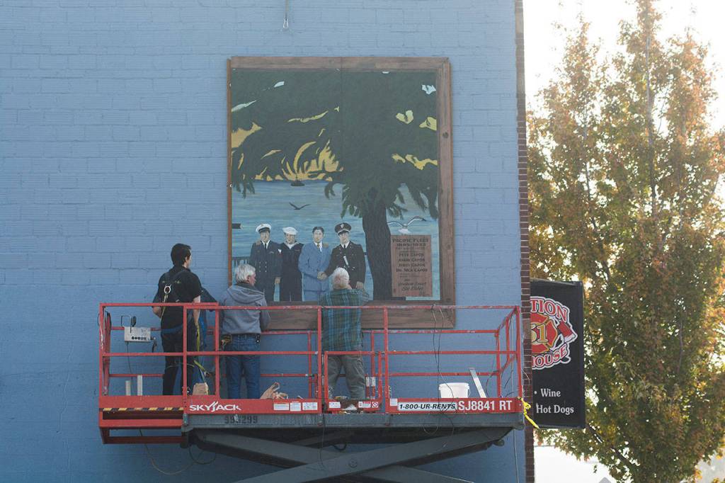 Hidden from ongoing westbound traffic per late building owner Pete Capos’ will, the mural shows between 50 and 60 ships anchored inside one of the deepest natural harbors on the West Coast.