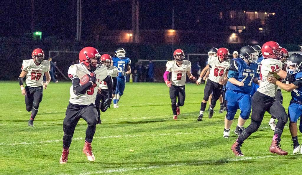 The Redhawks recovered Chimacum’s final onside kick attempt and capped the wild win off in style with two straight one-play scoring drives.