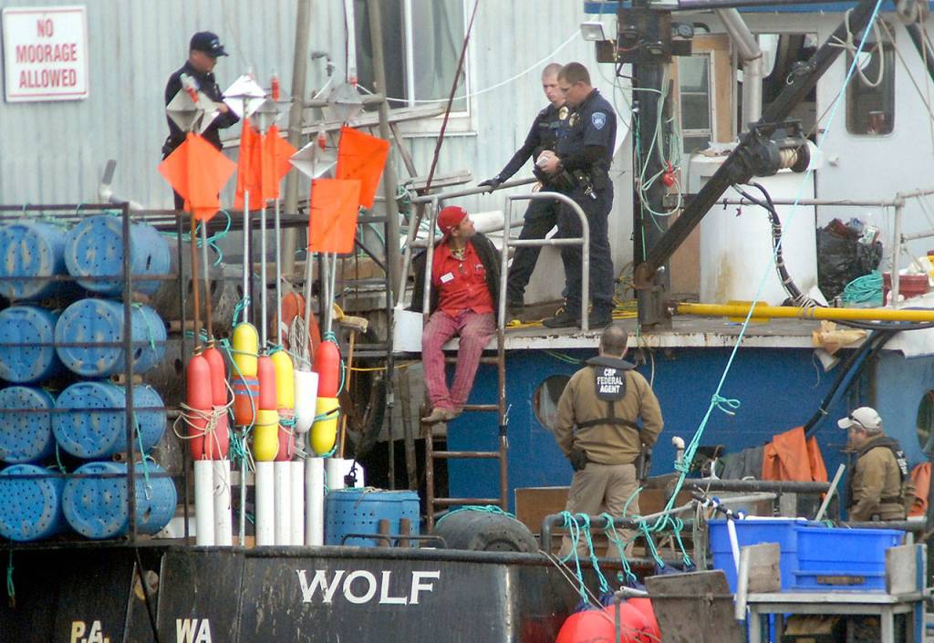 Port Angeles police said Hoffman demanded money for a past fishing trip he worked and refused to leave, climbing down a ladder to the engine room.