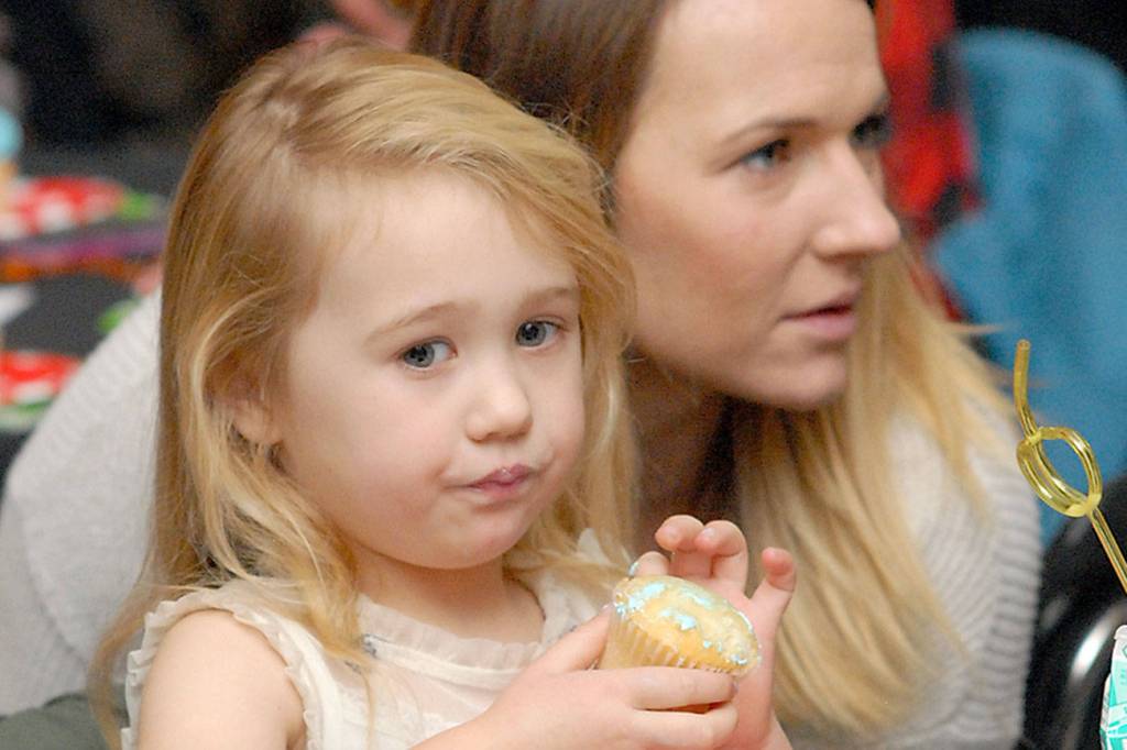 PORT ANGELES — Four-year-old Emmalyn Hanan, 4, enjoys a cupcake with her mother, Krista Hanan of Port Angeles, during Friday’s Teddy Bear Tea, the kickoff event for this weekend’s Festival of Trees at Vern Burton Community Center in Port Angeles.
