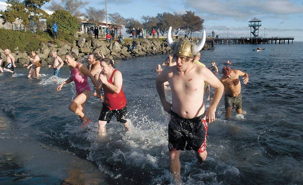 Since 1988, when the Olympic Peninsula Runners Club inaugurated the dip, the number of participants has surged from a brave three to a cool 100 at the beach at Lincoln Street and Railroad Avenue.