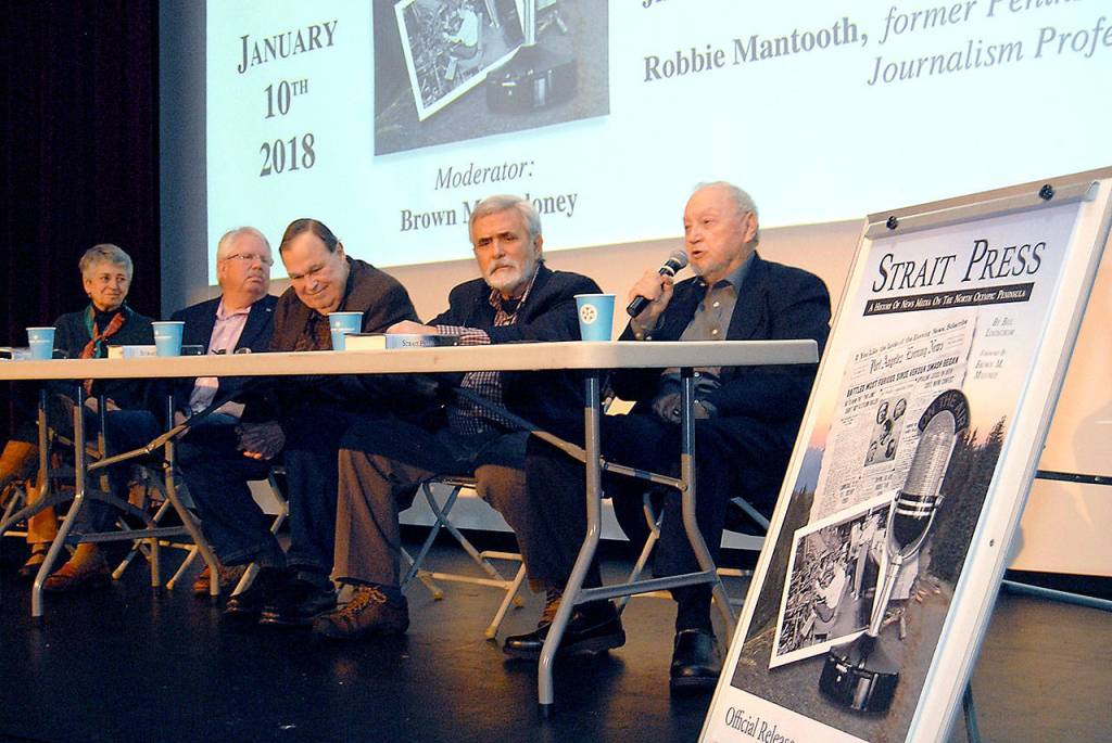 Lindstrom was joined on stage in the early panel by retired Peninsula College journalism instructor Robbie Mantooth, former Newsradio KONP owner and host Jim MacDonald and former PDN publishers Frank Ducceschi and John Brewer.