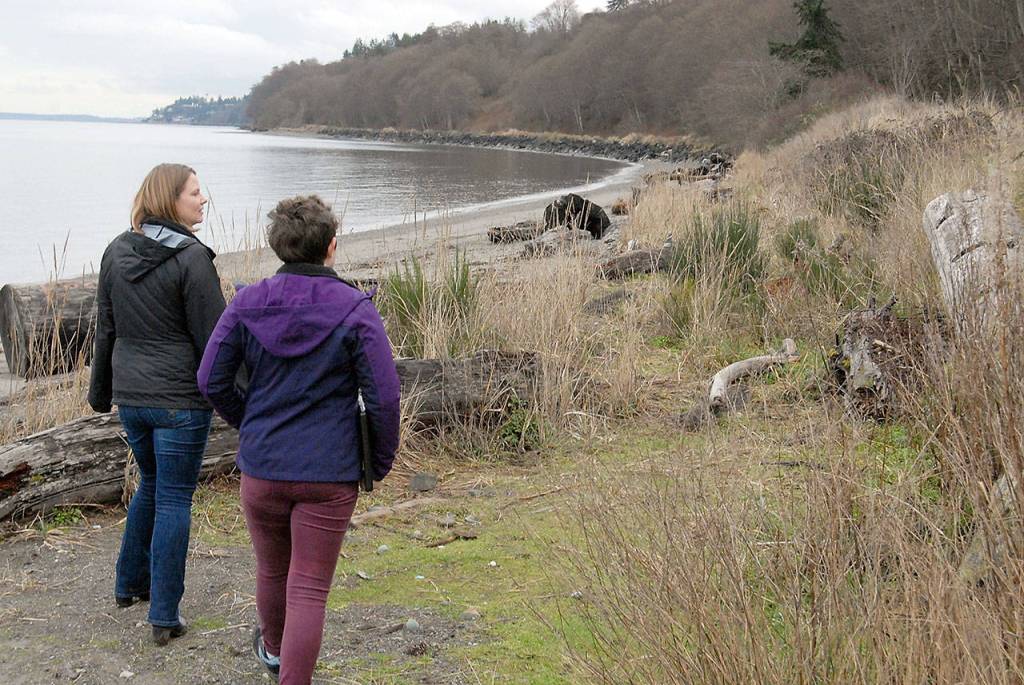 Kruger and Fry walked along the Olympic Discovery Trail from Hollywood Beach to a homeless camp east of the Rayonier mill site.