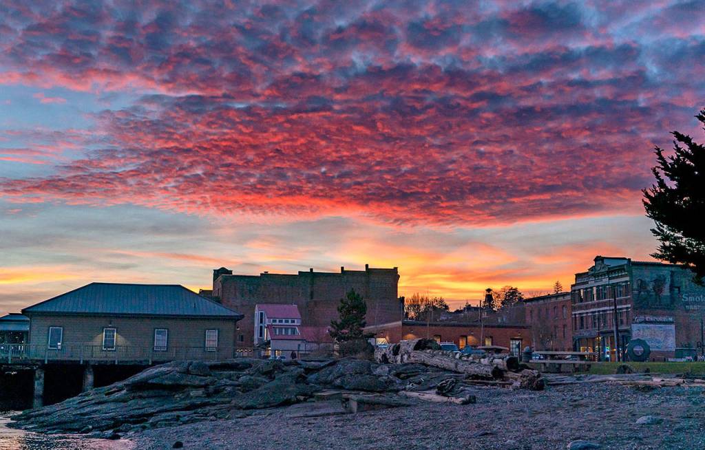 The skies above Port Townsend glow with the colors of a winter sunset Friday evening.