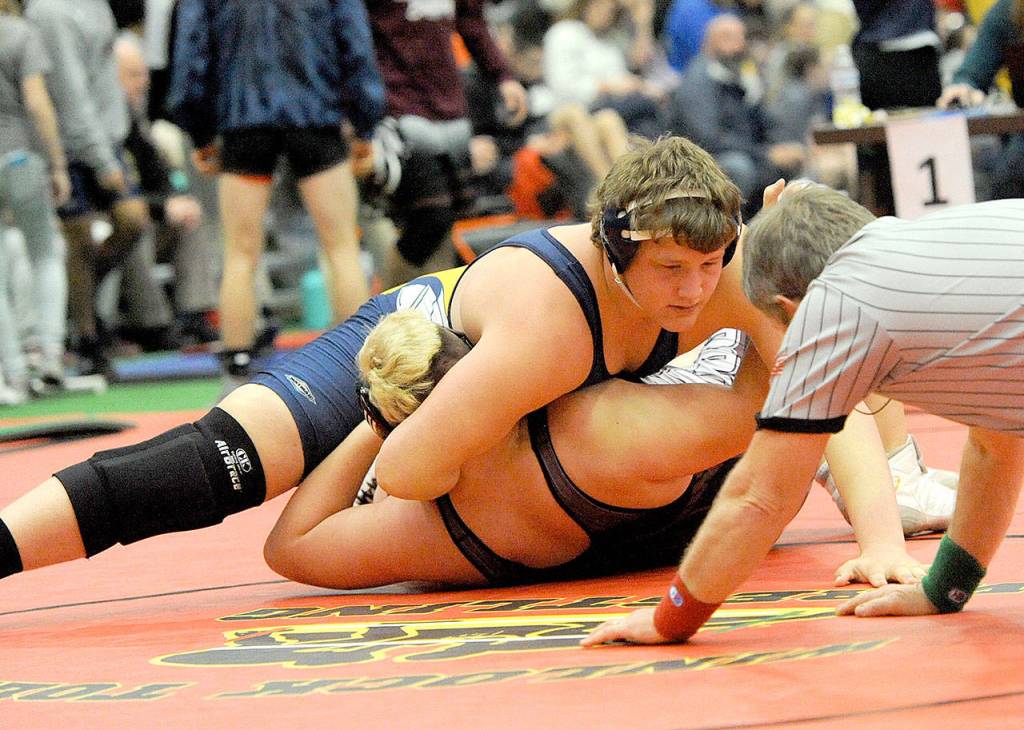 Winning their weight divisions were Gabe Petrick at 160 pounds, Dylan Tracer at 182 pounds and Wes Blue at 220 pounds. At the girls’ tournament held in Port Angeles, Port Townsend’s Brenna Franklin won the 170-pound division.
