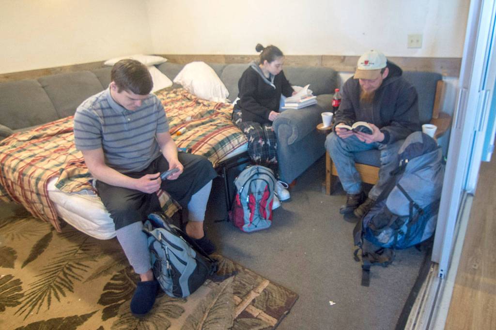 While the Chapmans were in a separate room reading, others were watching TV and enjoying warm drinks. People have had the chance to take showers and get laundry done as well.