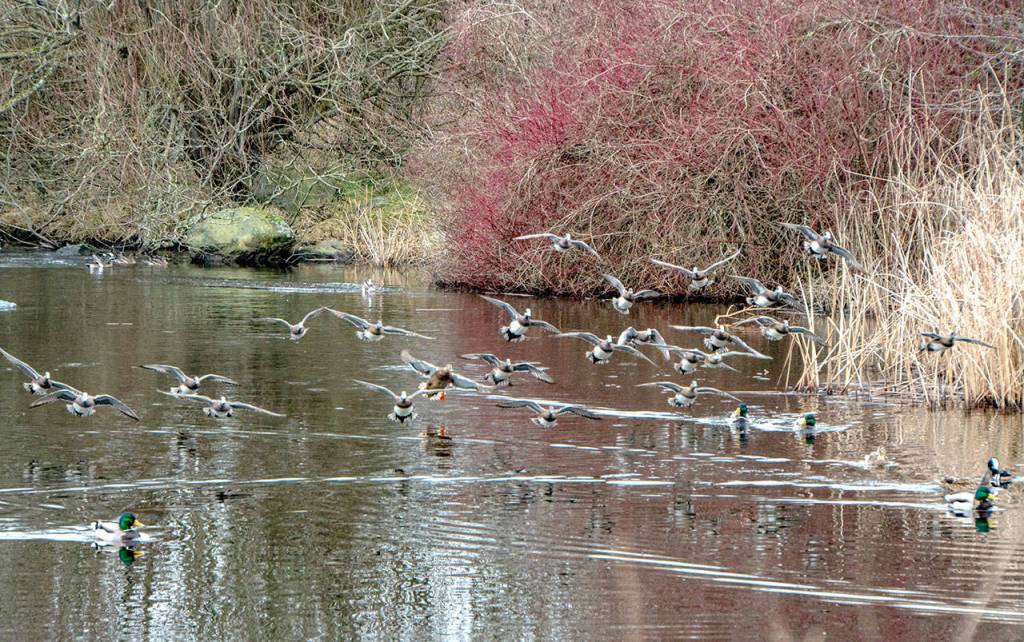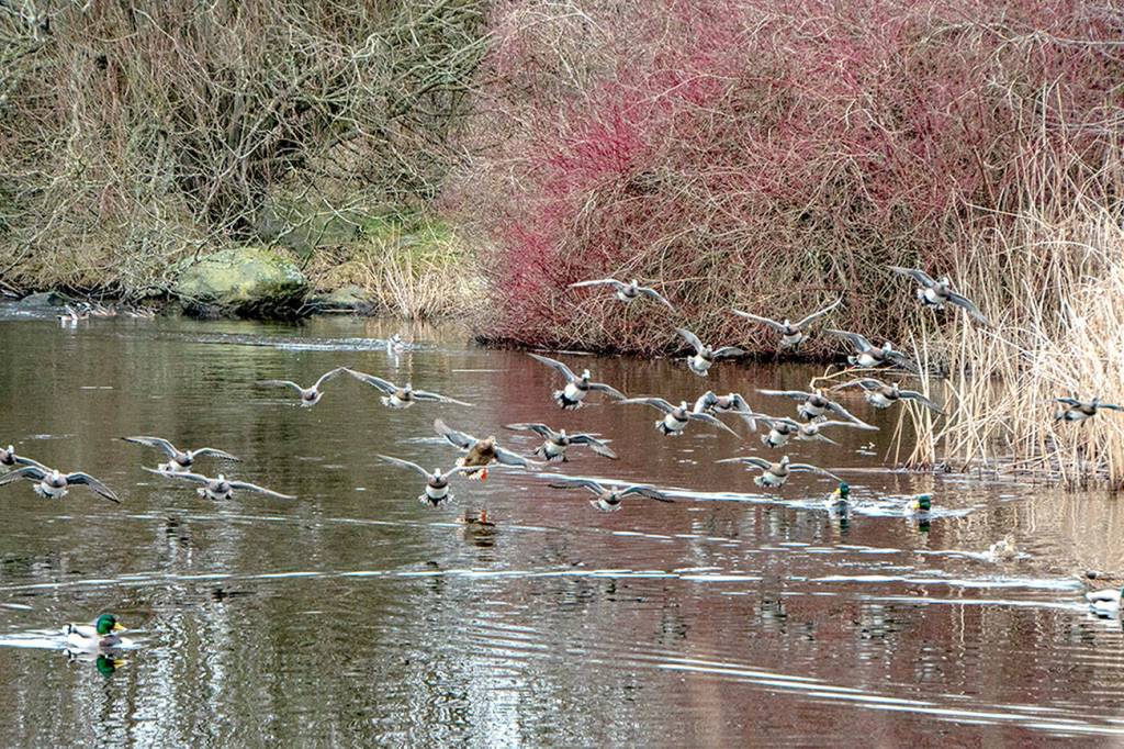 PORT TOWNSEND — A flock of ducks comes in for a landing at Kai Tai Lagoon on Tuesday.