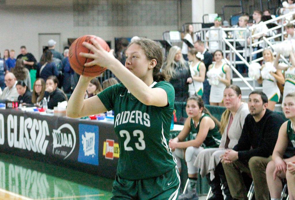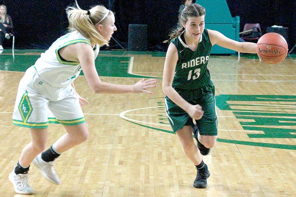 Freshmen Bailee Larson and Eve Burke played well for the Riders. Larson had seven points and four rebounds and Burke showed hustle, scoring four points and grabbing six rebounds.