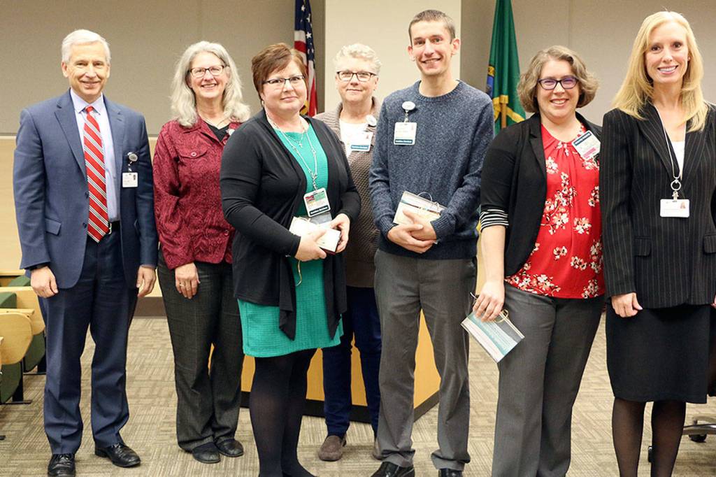 PORT ANGELES — Olympic Medical Center honored five staff members at a recent meeting of its board of commissioners.